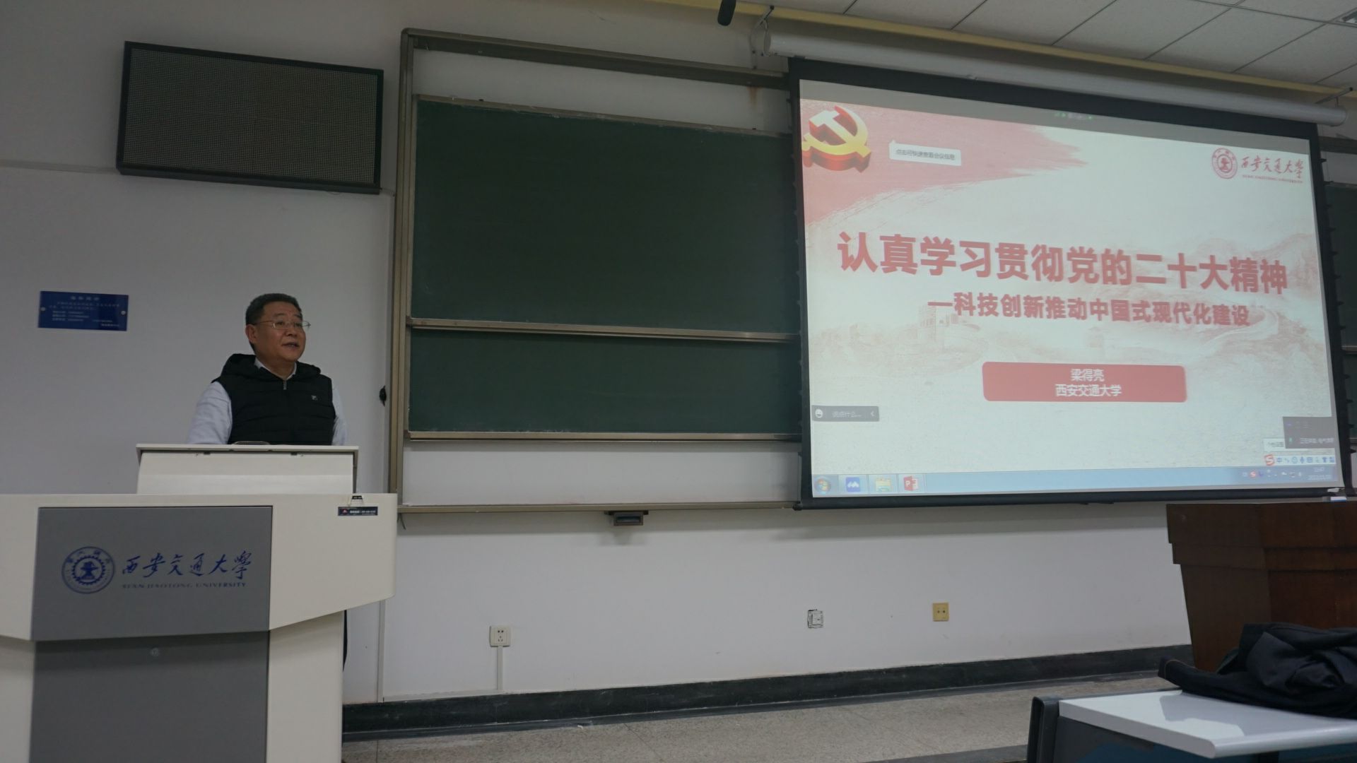 党委书记梁得亮教授作题为《认真学习贯彻党的二十大精神——科技创新推动中国式现代化建设》的专题报告,休闲小栈