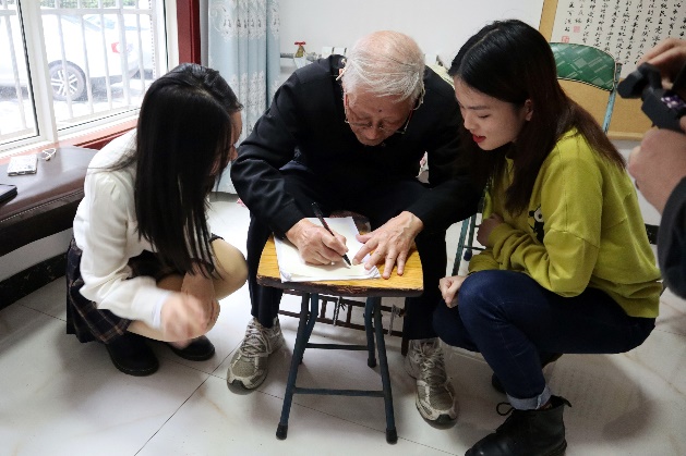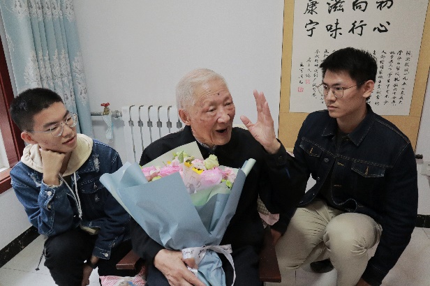陈教授虽已九十二岁高龄,但依旧非常健谈。陈教授非常热情地招待同学们,并和同学们一一握手,表示看到这些年轻人来非常开心,自己特别愿意和年轻人聊天。