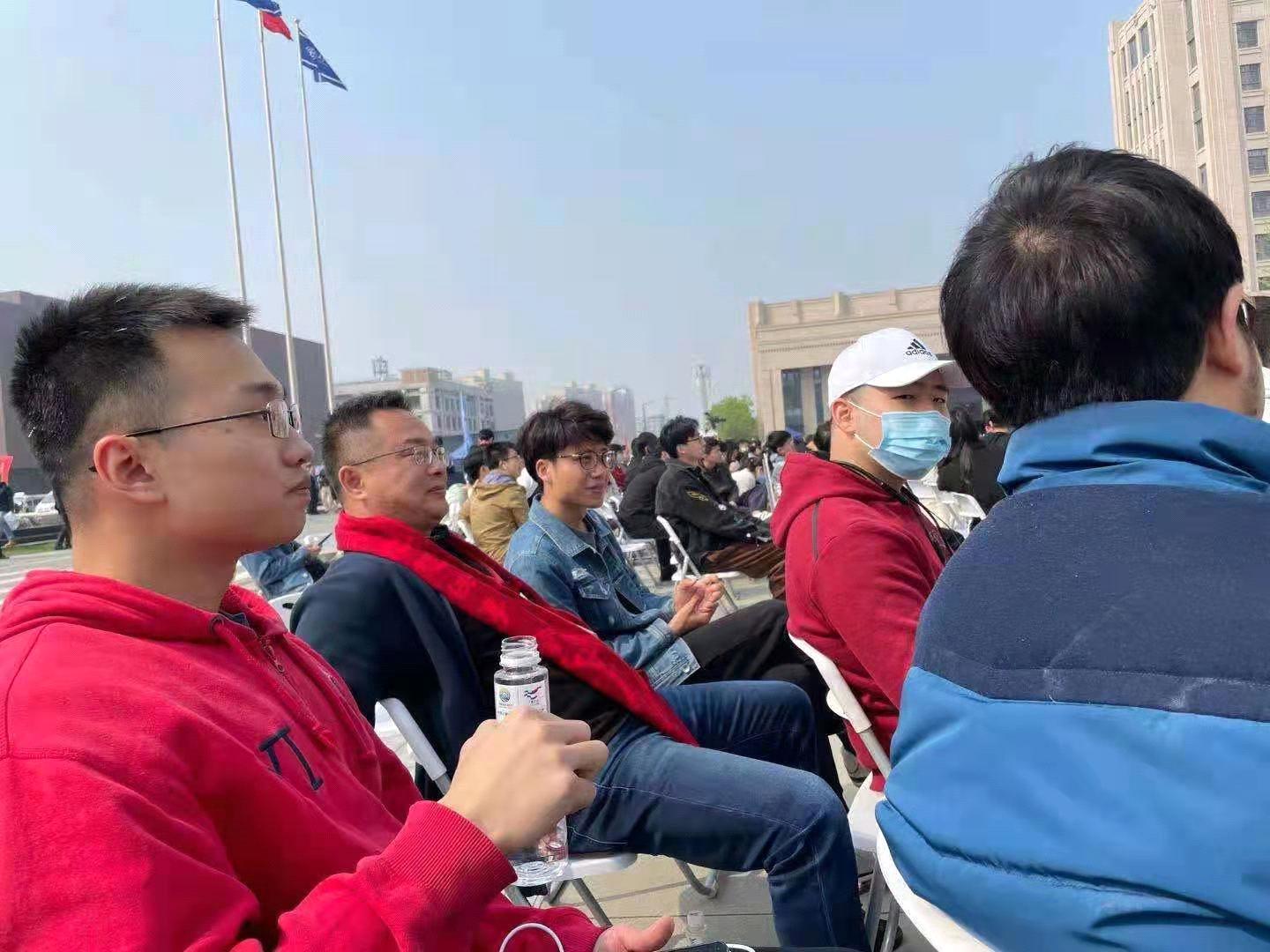 硕9041党支部在A区西侧广场集合,在学院的组织下秩序井然进入涵英楼广场。
