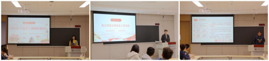 与会党员针对十九届五中全会内容分享学习心得。硕0054党支部的贾文皓和刘苏梅介绍了推进国家能源转型和碳中和目标的实现,以及构建清洁低碳、安全高效能源体系的全球大背景,指出新时代的电气人要坚持“四个面向”,解决学科发展中的“卡脖子”问题,啃下难啃的“硬骨头”,立足实际,坚持创新。硕0046党支部党员温浚铎回顾了前三次工业革命的历史,指出大学在其中扮演的重要作用。第四次工业革命是机遇也是挑战,交大通过建设创新港探索大学新形态,交大学子应当与祖国同呼吸、共命运,投身于第四次工业革命的浪潮中。与会党员纷纷结合智能电网、新能源建设、新兴学科融合等电气领域发展热点,发表了对“十四五”规划、二〇三五远景目标、第四次工业革命的真知灼见,展现出大家服务国家重大需求的志向和投身中华民族伟大复兴事业的决心。