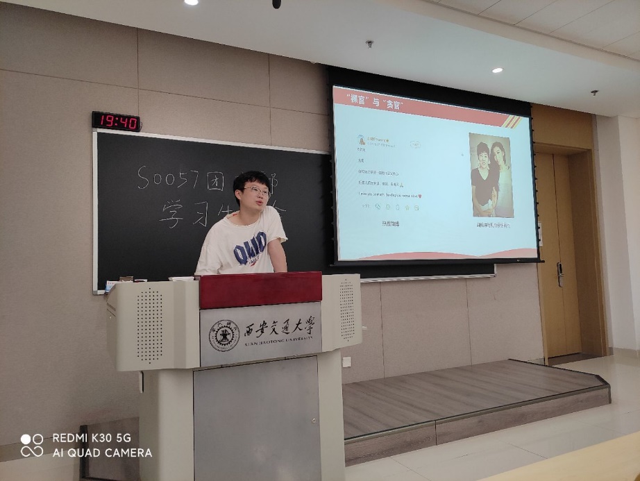 之后,马宇威同学从《女神之光》入手,深入浅出地讲解了郭沫若作为共产党人和文学家的波澜壮阔的一生,是文学精神与党性的高度融合,也是作为无产阶级作家的光荣一生。