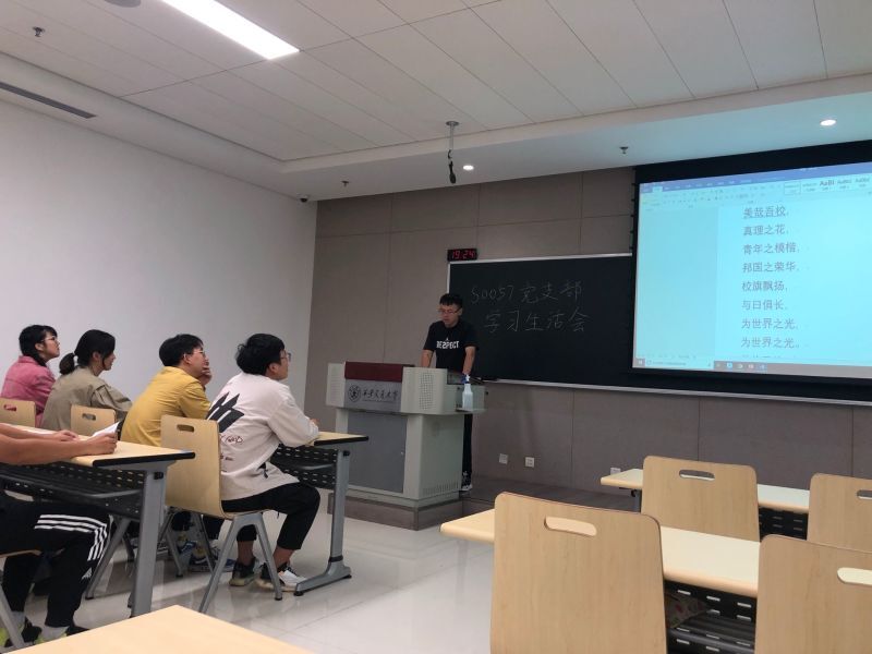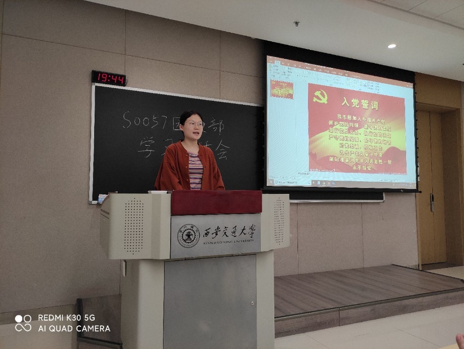 S0057班党、团支部一起开展了党团组织生活会。党支部书记成智同志带领全体党员重温入党誓词,各位党员庄严肃立,右拳紧握,伴随着铿锵有力的誓言,喊出作为共产党员的决心与信念。入党誓词是警钟,提醒党员们不忘共产党人的初心与使命;入党誓词是动力,激励党员们为共产主义事业奋斗终生。宣誓完毕,党支部由马宇威同志组织集体学习了党政时事,了解“裸官”这一严重违背党性的现象对主流意识形态和社会风气的损害,并对“如何从自身出发,提高自身党性修养,做一个全心全意为人民服务的人”这一话题进行了深入讨论。