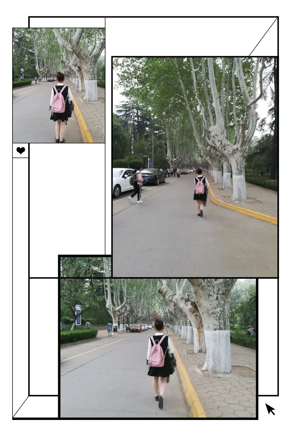 前景的数和绿化带形成了天然的图框,两个框中的人物被隔开但是是联系着的。能够很高频率作为婚纱摄影的外拍取景地,说明我交是真的美如画,正应一句“美哉吾校”。