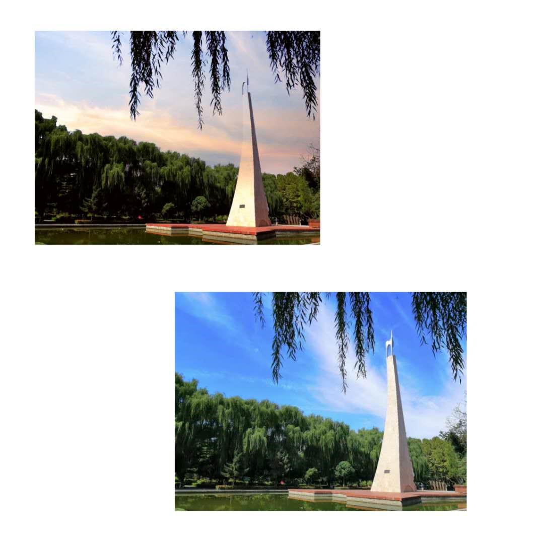 | 这是早上和傍晚时候的腾飞塔,从旭日东升,到晚霞满天,腾飞塔见证了交大一天天的变化,更是见证着交大来到西安之后,日新月异的变化。 |