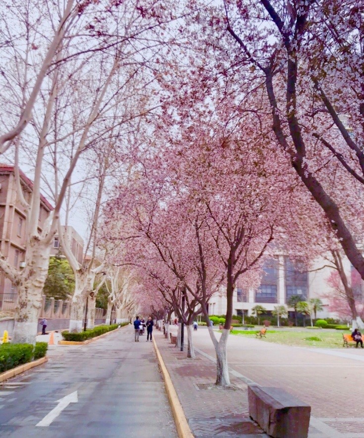 紫叶李开了,是春天来了,主楼门的这条路,是只属于交大的春天~在风的漫步之下,花朵绽放出一个个天真可爱的笑脸。紫叶李是安静的,是温和的,它不同于樱花的绚丽与恣意,淡淡的粉色仿佛能带走一切的烦恼,一团团,一簇簇,淡粉,乳白……令人目不暇接。它们或许并不知道,是自己把春天的一束束阳光播撒在了人们心田。