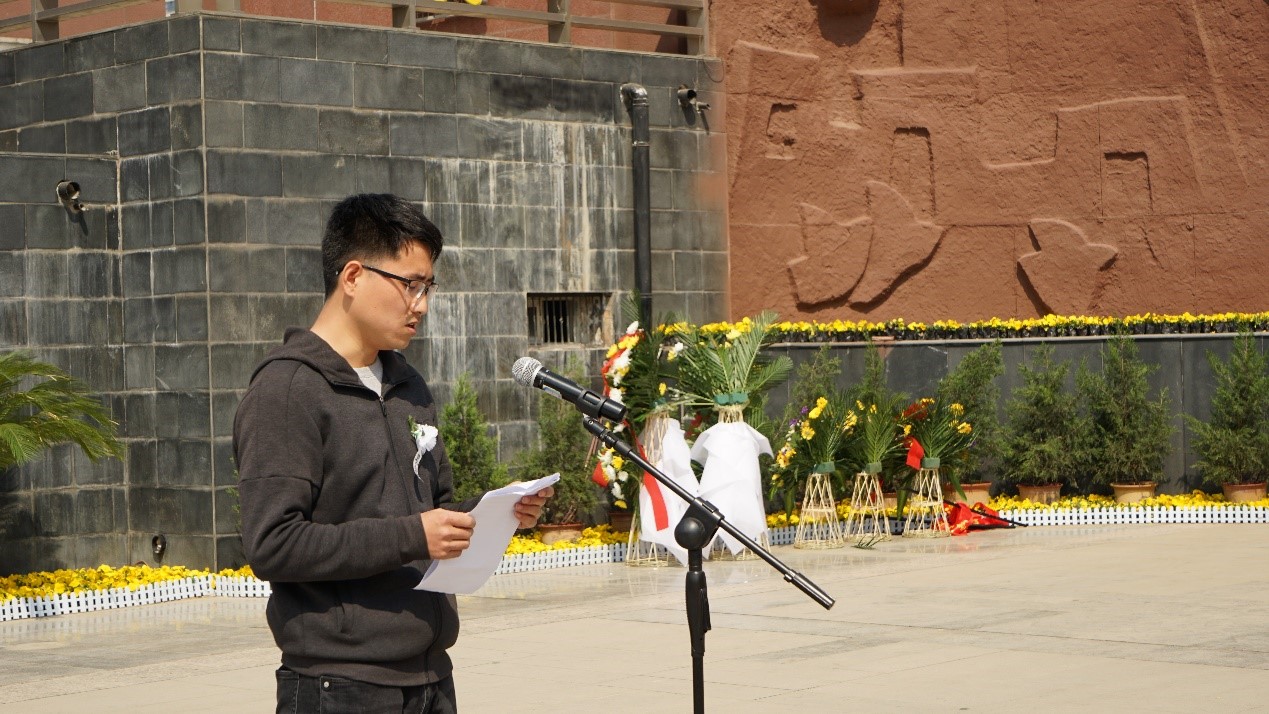 接下来,由入党积极分子代表王嘉豪同学发言,王嘉豪同学讲到,在西安烈士陵园里安息着726名革命烈士,从大革命时期到抗日战争,再到解放战争,革命先烈前赴后继,为推动民族独立、争取革命胜利献出了宝贵的生命,他们的斗争牺牲换来了我们这一代的幸福生活,烈士的精神代代流传。