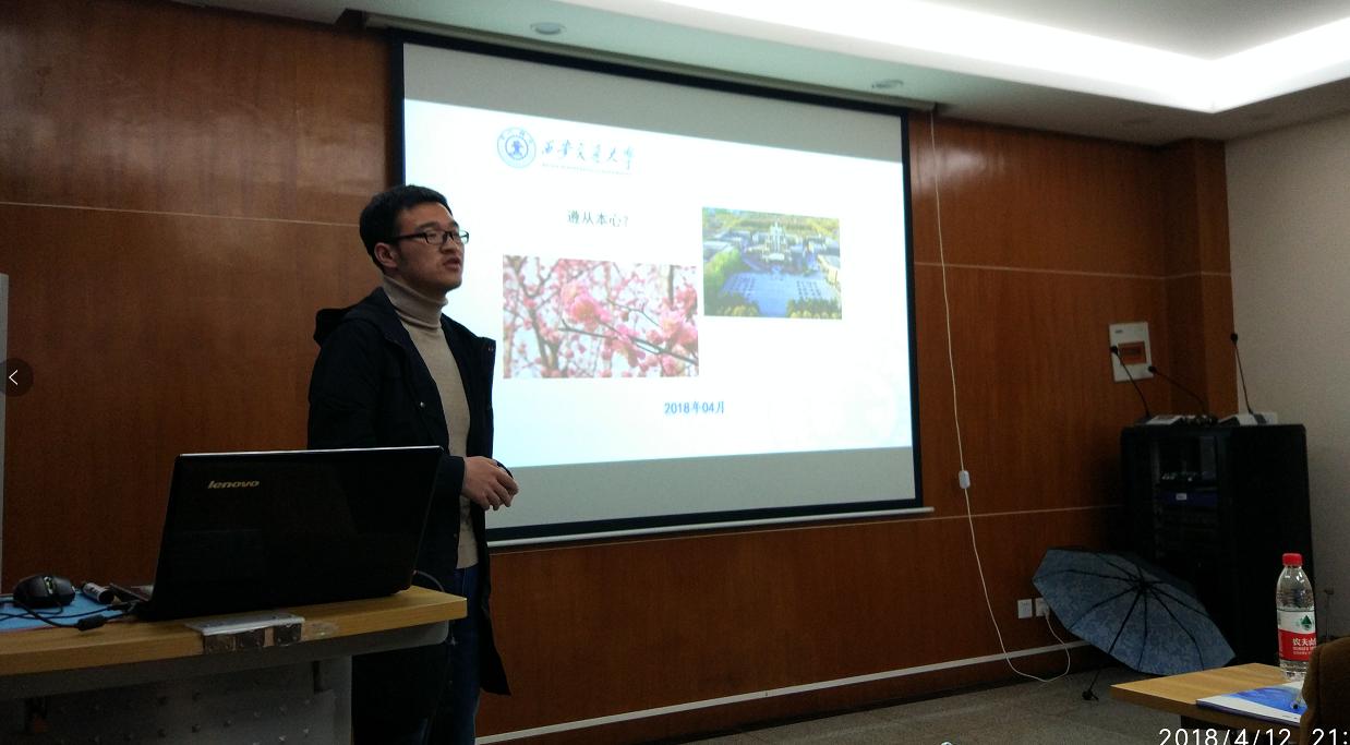 4月12日晚,硕7048班党员、预备党员及积极分子在东一楼北会议室举办4月份组织生活会。为进一步加深各党员之间的交流,并在科研之余丰富同学们的课外生活,党支部特在组织生活会前夕积极倡导同学走进四月花开的仙交,捕捉身边不经意的美。