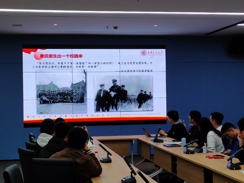 硕3070支部的樊囿麟以“麦田里种出梧桐林”为题介绍西迁精神。樊囿麟从西迁的历史以及西迁精神内涵出发,介绍了西迁精神与交大在西部建设取得的成就,又讲述了近年来以白玛央金为代表的西迁精神新传人的故事,同学们深受感动。最后,他激励大家传承弘扬西迁精神,用自己所学所长去回馈社会、报效祖国。