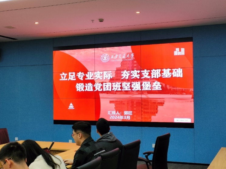 与会支部分别介绍支部情况。宋旭晖从支部特色活动、党团班一体化建设、支部荣誉三个方面介绍硕3070党支部基本情况,支部特色活动落实五育并举,助力支部成员全面发展。郭旺表示,硕2077党支部立足专业实际,坚持科学报国,发表多篇论文与专利,支部开展形式多样的活动,报道总阅读量五万余次,影响力显著。陈帅先介绍了西安理工大学休闲小栈