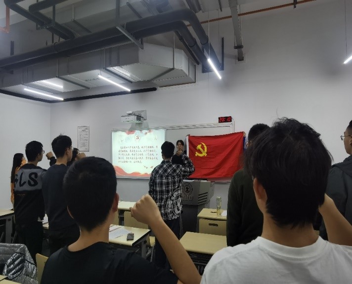 最后,硕4068党支部书记周悦瑶带领支部全体同志重温入党誓词。正如习近平总书记所言,初心不会自然保质保鲜,稍不注意就可能蒙尘褪色。房间要经常打扫,镜子要经常擦拭,誓词要经常重温。时常重温入党誓词,正是为了擦亮初心,牢记作为一名共产党员的使命担当。