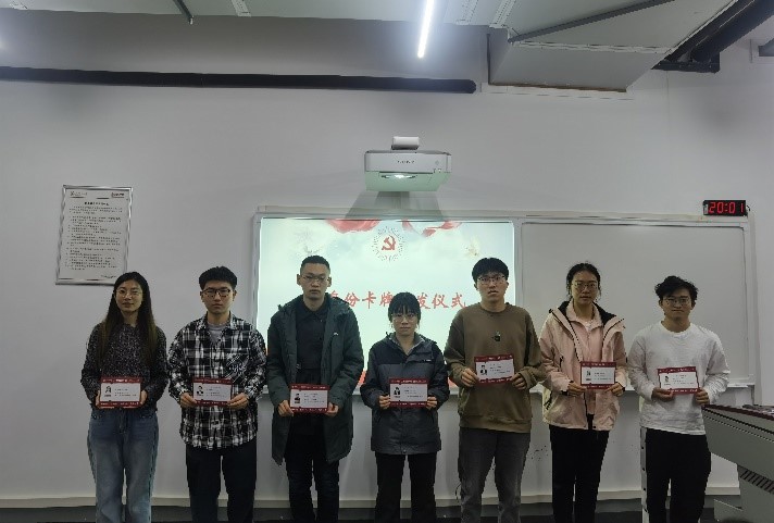 硕4068党支部书记周悦瑶向所有成员颁发了学院定制卡牌,随后,全体党员同志签署党员承诺书。