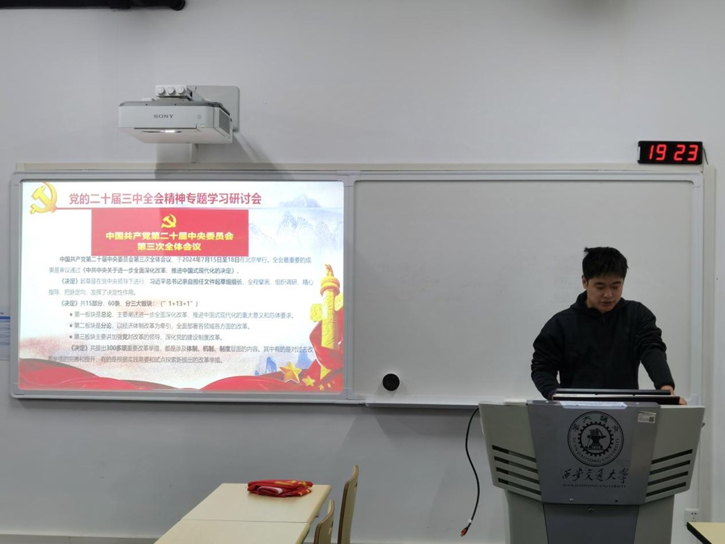 随后进入到本次活动的重点环节——党的二十届三中全会精神专题研讨会。首先由孙宇菁传达了党的二十届三中全会的主要精神,包括坚持和完善社会主义制度、推进国家治理体系和治理能力现代化等方面的战略部署。与会成员纷纷表示,深刻认识到学习全会精神的重要性,特别是在新时代背景下,如何将全会精神贯彻落实到实际工作中。