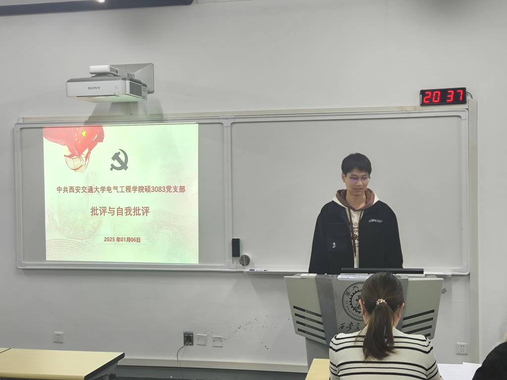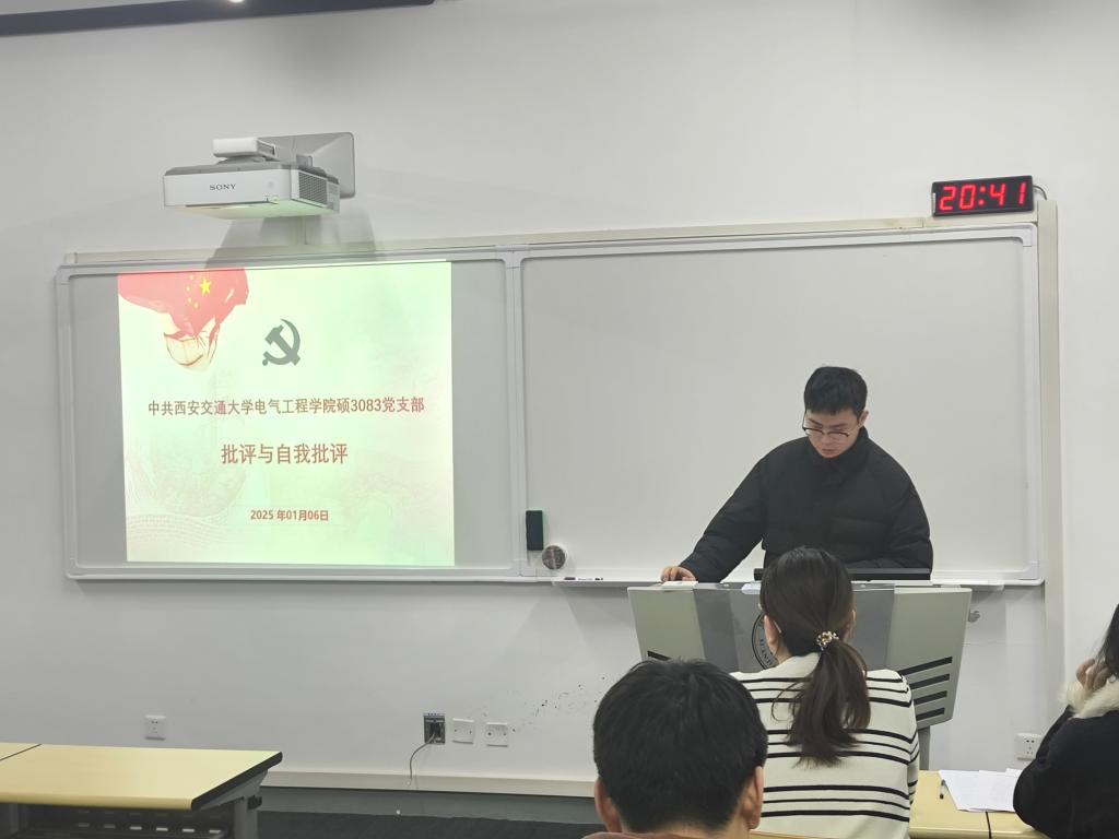 硕3083党支部于1月6日组织开展2024年度党支部组织生活会暨预备党员转正大会。本次活动由梁曼琪主持,S3083班全体成员出席。