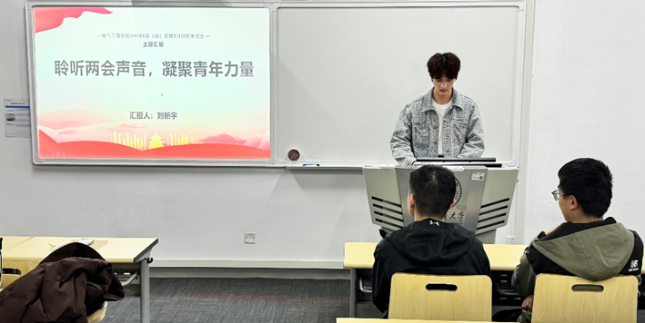 首先党支书张启恒同学介绍了本次组织生活会的背景和目的,阐述了两会精神对青年学生的重要意义。作为电气工程专业的学生,应深刻领会两会精神,明确自身在国家发展中的角色,积极投身科技创新等领域,贡献青春力量。之后支部三位同学分别围绕这一主题进行分享。
