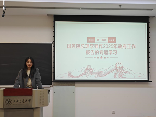 活动第一部分围绕“聆听两会声音・凝聚青年力量”展开专题学习,聚焦2025年政府工作报告与《教育强国建设规划纲要(2024-2035年)》核心内容。