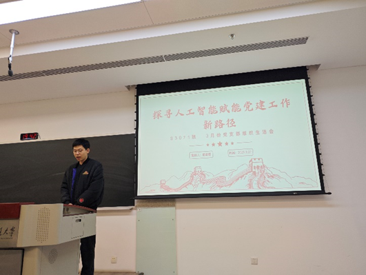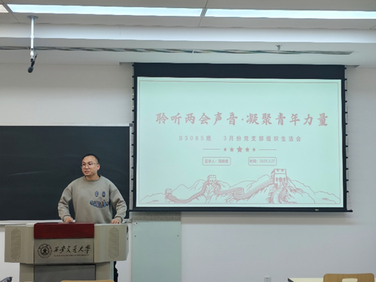 2025年3月27日晚,硕3071、硕3085党支部联合举办以“青春筑梦两会 数智赋能未来”为主题的党日活动。活动紧扣全国两会胜利召开的时代背景,聚焦政府工作报告中“新质生产力”、“人工智能”和“网络安全”等热词,通过专题学习引导党支部全体成员及积极分子将“科技创新”与“青春护航”使命深度融合,为中国式现代化注入青春动能。