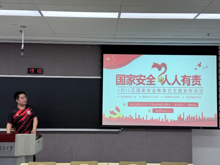 接下来,常昊鑫同志带领同志们对国家安全的相关知识进行了学习。常昊鑫同志首先介绍了4月15日国家安全教育日的由来,接着从树立国家安全意识、不触碰法律红线、生活中我们可以这么做、保守国家秘密法、和网络信息安全等多个方面对国家安全进行了细致的介绍,帮助同志们有效提高了国家安全意识。