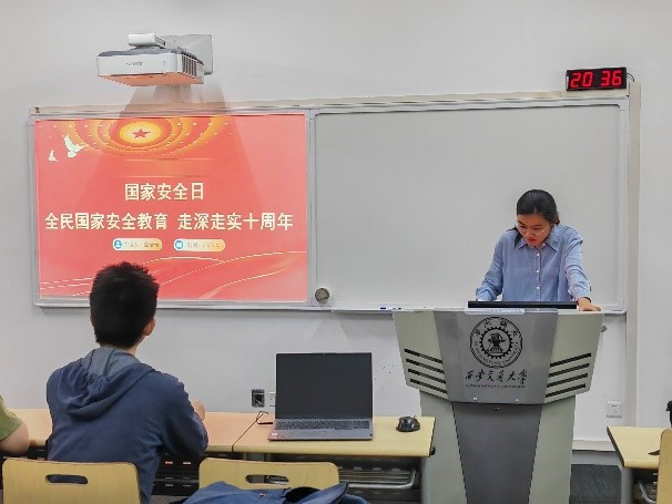 成泽旸围绕“全民国家安全教育日”主题展开深入阐述,强调维护国家安全是每个公民的神圣职责。她通过介绍大气污染防治、太空技术发展等生动案例,深刻诠释了新时代总体国家安全观的丰富内涵。最后,她号召全体成员树立“国家安全人人有责”意识,在涉外交往中严守保密纪律,在网络空间自觉抵制错误思潮,共同构筑捍卫国家主权、安全、发展利益的钢铁长城。