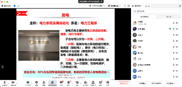 之后,张旭同学将为我们介绍电气专业的小方向,帮助大家更好地了解我们专业的发展前景和未来的学习方向。张旭同学的介绍涵盖了多个关键领域,包括发电、电机、工企、高压、电器以及三电等,每个小方向都进行了详细的阐述。