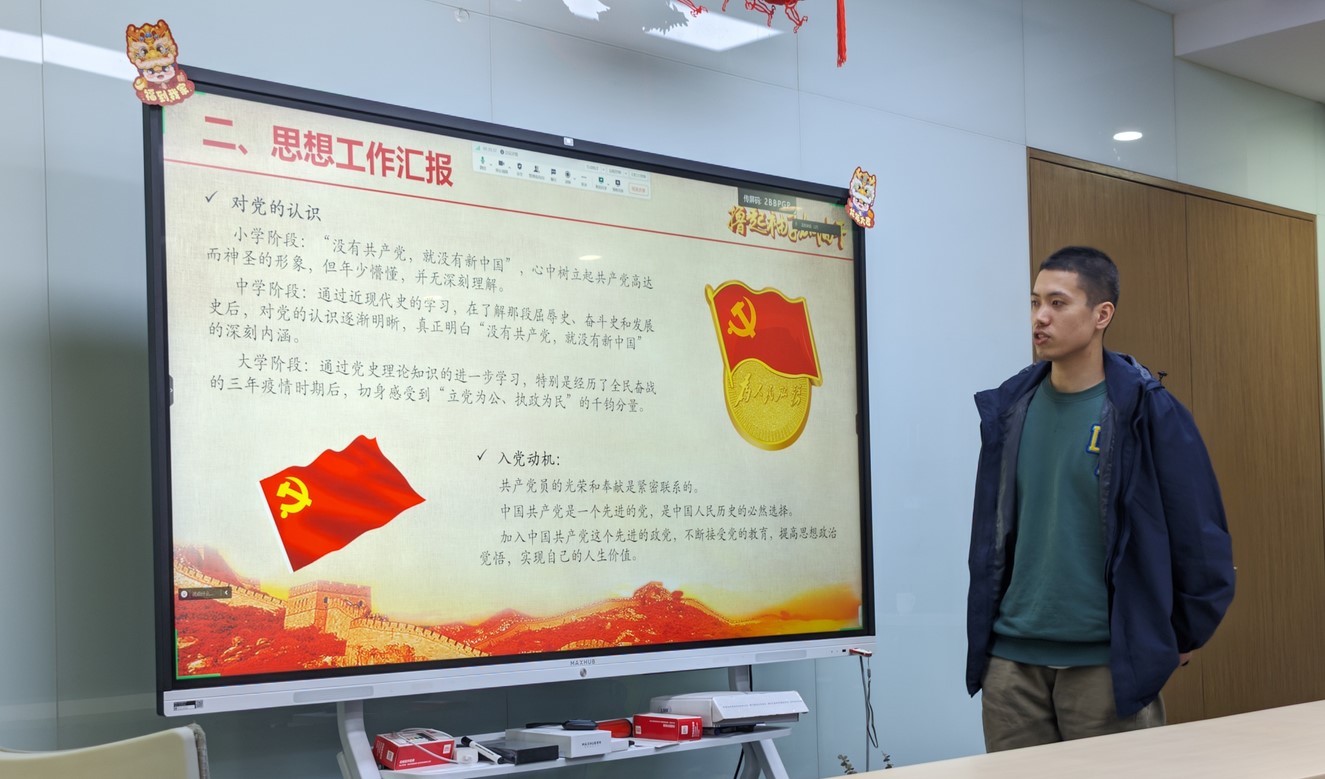 随后,刘馨雨等六位积极分子分别分享了他们在培养期间的个人成长经历、社会服务参与情况及理论学习进展。每位积极分子都展现了自己的成长和进步,体现了党组织对他们的悉心培养与指导。接下来的答辩环节中,支部正式党员围绕党章党史、时政热点以及对积极分子的综合素质进行了深入提问。通过这一环节,全面考察了积极分子的政治素养、大局意识、责任感及思辨能力、组织能力等多方面的综合素质。