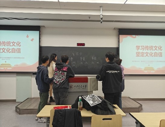 硕4063团支部、电信学部硕4252团支部、能源与动力工程学院硕4036团支部在1号巨构4055教室共同举办了以“学习传统文化,坚定文化自信”为主题的传统文化学习交流活动。此次活动吸引了各支部优秀青年学生的积极参与。