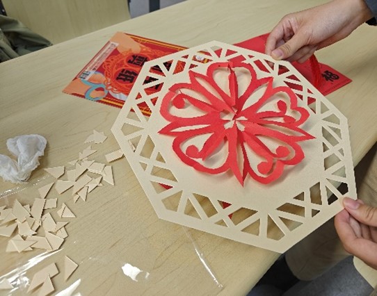 剪纸传承的视觉形象和造型格式,表达了广大民众的社会认知、道德观念、实践经验、生活理想和审美情趣。同学们纷纷拿起剪刀,挑选了不同吉祥寓意的图案创作;投壶作为中国古代士大夫宴饮时的一种投掷游戏,在本次活动中也十分受欢迎。