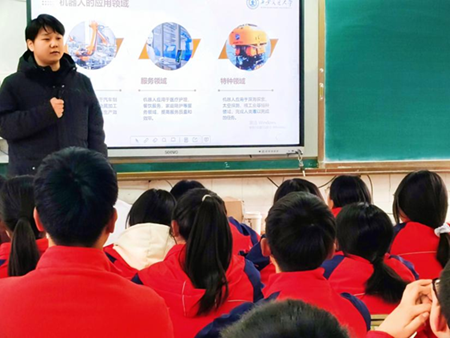 在互动环节中,咸钦元结合当前科技发展趋势,对机器人的未来发展进行了展望,并鼓励同学们积极投身科技创新,为社会发展贡献力量。他的讲解激发了同学们对人工智能领域的浓厚兴趣。八(15)班学生徐启博表示:“原来机器人离我们的生活这么近!以后也要像学长学姐们一样,用科技改变世界。”
