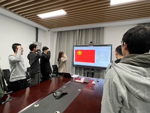 会议最后,由胡艺雯同学带领全体团员重温入团誓词。铿锵有力的宣誓词提醒着团员们铭记团员使命,继续在时代浪潮中承担青年担当。