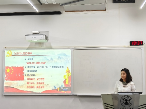 活动第一项聚焦四个关键词:真理、初心、牺牲和忠诚。硕4079党支部彭诗哲同学讲到建党精神在2021年“七一”重要讲话中首次系统阐述,其核心内容为:坚持真理、坚守理想;践行初心、担当使命;不怕牺牲、英勇斗争。它不仅承载了党的历史基因,连结五四运动、新民主主义革命和改革开放等不同时期的精神传统,更在新时代赋予新的时代价值,为中华民族伟大复兴注入强大精神动力。伟大建党精神与民族精神深度融合,推动中华民族从“救亡图存”迈向“强国建设”,并在新时代催生出“航天精神”等新的精神形态,展现了中国共产党人鲜明的政治品格和精神特质。
