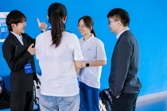 晋级决赛现场的道路并非坦途,而是由无数个日夜的奋斗与汗水铺就。在技术赛道的现场,蒋棹骏同学回忆起备赛过程,他说“从一开始报名选题,我们就抱着把能做的都做好的心态。为了让现场展示更为通俗易懂,我们常常对每一句话、每一页内容展开激烈的讨论。”在商业赛道的现场,申茂群同学表示“虽然我们的作品是第一次在现场进行展示,但我们也为此做了充足的准备。出发前,团队成员针对商赛的关键环节进行了逐字逐句的打磨,有时候为了修改一句话设想了各种情景。