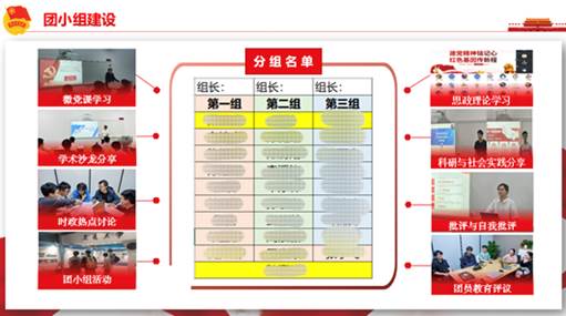 大会第四部分孙嘉玮同志介绍了博2508团支部的建设情况。目前支部将所有团员按照的研究方向划分为三个团小组,并建立了“班委-团小组组长”交叉管理方法和团员积分奖励制度,激励青年积极参与组织生活,提升支部凝聚力、向心力和战斗力。