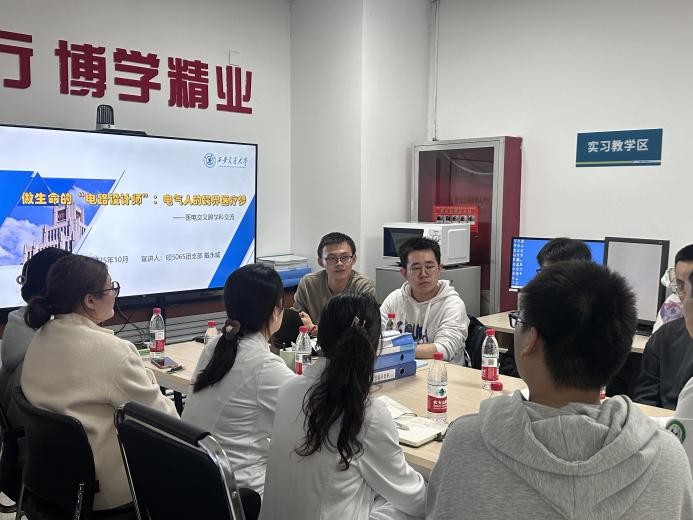 随后进行的主题分享环节中,戴永威同志以“做生命的‘电路设计师’:电气人的跨界医疗梦”为题作了报告。他首先以通俗易懂的语言阐释了电气学子的研究方向。随后,他结合湖北省省委书记王忠林关于推进医工交叉融合、全力保障人民健康的指示精神,进一步阐述了电气技术在医疗领域的重要作用。最后,戴永威同志以心电图、脑电图及智能传感器等典型医电融合应用为例,深入浅出地阐释了其中涉及的电气原理,并展望了当前研究面临的挑战与未来发展前景。