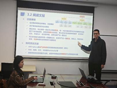 曲圣同学则围绕“如何高效阅读与理解文献”分享了自己在多段科研训练中总结得到的方法与体会。他建议同学们在初期广泛阅读高水平论文,了解领域主流方向;中期聚焦优秀作者的系列成果,梳理研究脉络;后期则应勇于跨界,借鉴其他学科的思维方式,拓宽科研视野。