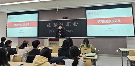 杨子玄首先分享了他在专业学习上的成功经验。作为年级学业成绩第一名的佼佼者,他聚焦专业学习核心需求,详细介绍了实用的选课策略和高效备考方法,强调专业课程与数学类课程的学习需要采用“滚动式复习”的理念,通过反复研读和深度复盘来加深理解,为同学们构建了一个科学的学习框架。
