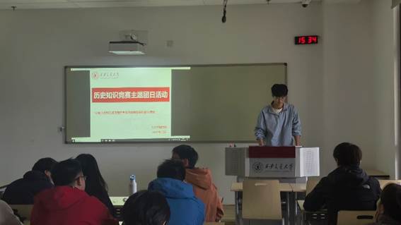 硕5076团支部精心策划并成功举办了一场别开生面的党史知识竞答活动。本次活动以“铭记抗战历史,传承红色精神”为主题,由团支书董潇健主持,班级同学分成四组展开激烈角逐,现场气氛热烈,在知识的碰撞中重温党的光辉历程。