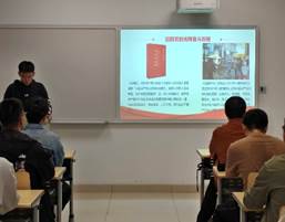 团支部书记黄怡康同学则分享了《幸福论:中国共产党人始终不变的初心和使命》一书和电视剧《觉醒年代》,他从理论著作与影视作品中,阐述了中国共产党人为人民谋幸福的初心使命,以及早期共产党人在探索救国道路上的思想觉醒与热血担当,引发了在场同学的强烈共鸣。