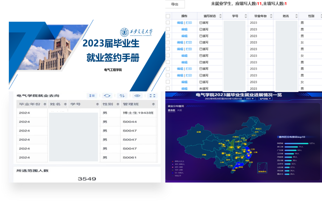 通过毕业年级群、学院公众号、官网、电子屏等途径实时下发上千条招聘动态;分类整理重点企业名录,发布《电网、企业校招日程与选调汇总表》,实现就业信息对学生“一竿子插到底”,信息高效精准投送;发布《就业推荐表相关问题收集表》,实时解决学生就业相关问题,将学生群体与学院有效联动,保证答疑解惑全流程,就业服务全方位。